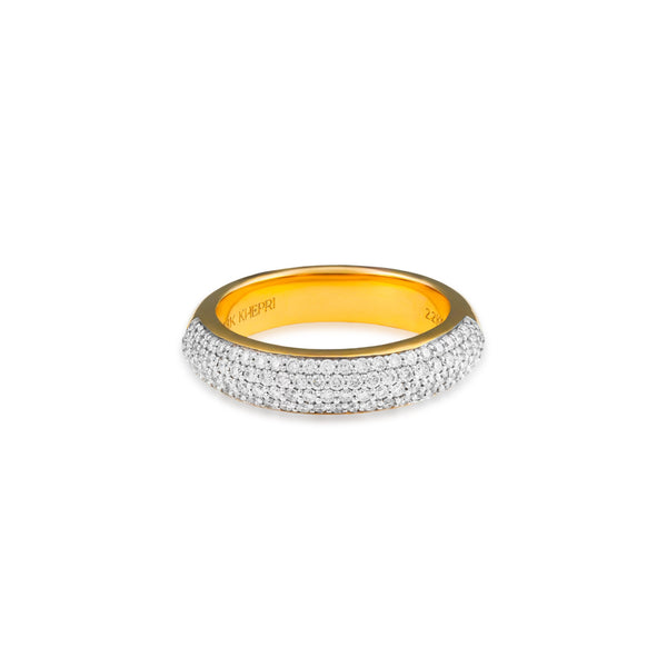 Khepri Jewels’ Diamond Pavé Ring is a timeless essential. Set in 18K & 22K yellow gold, this classic band sparkles with approximately 1.0 carat of pavé-set diamonds, offering brilliance from every angle. A must-have piece for stacking or wearing solo.