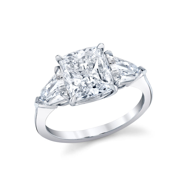 This breathtaking 2.02ct radiant-cut diamond engagement ring by Piranesi dazzles with brilliance and depth. Set in luxe platinum, the center stone is accented with 1.15ct bullet-cut side diamonds, crafting a crown-like silhouette fit for modern royalty. A bold yet elegant tribute to your forever.
