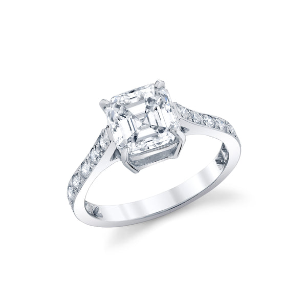 - Center Stone: 2.11ct Asscher Cut Diamond (H color, VS2 clarity)