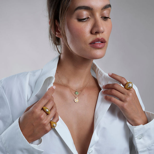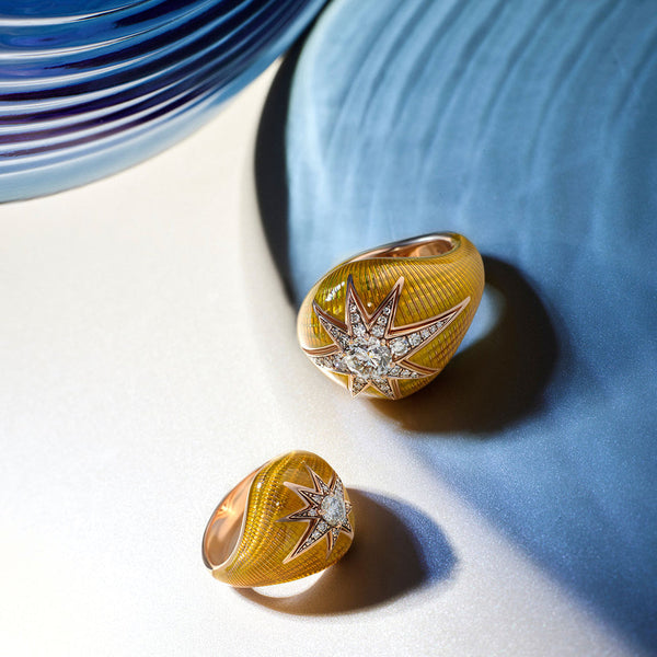 Jo’s Note: A flash of golden enamel kissed with diamonds—I love how this ring feels like wearing a sunburst of joy on your hand.