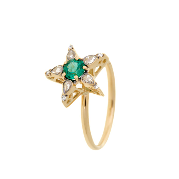 Details: Ring in 18K yellow gold set with emerald and diamonds