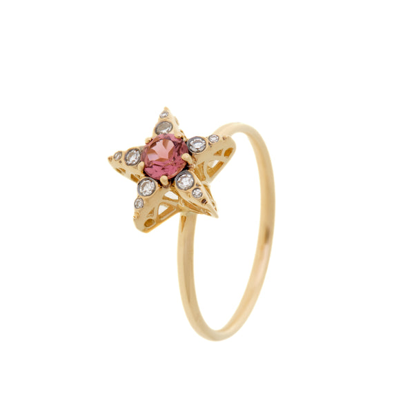 Details: Ring in 18K yellow gold set with pink tourmaline and diamonds