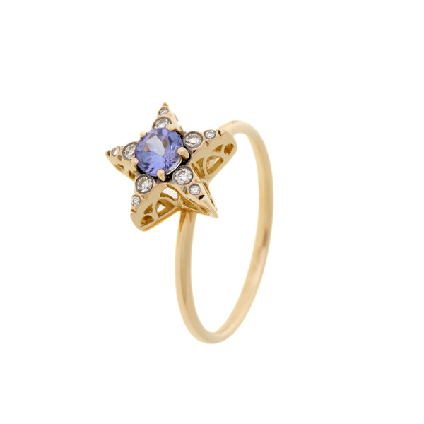 Details: Ring in 18K yellow gold set with tanzanite and diamonds