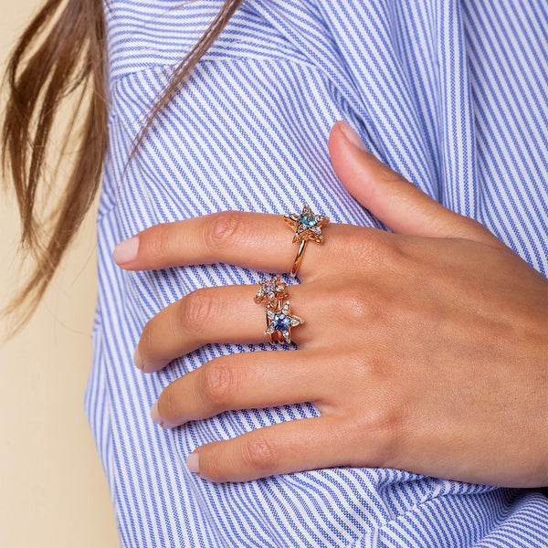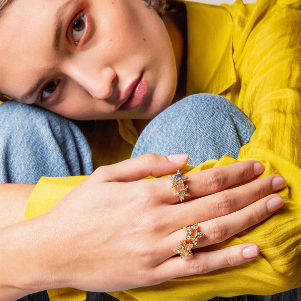Selim Mouzannar's Istanbul collection, Al Istana, the Sublime Porte, stands as a symbol of terrestrial night, echoing the grandeur of the ancient Ottoman Empire. Above it, the celestial vault stretches, it's myriad stars reflected in the shimmering sea below. The Star, adorned with 5 or 7 branches and encrusted with precious stone, emerges as the city's ultimate talisman. A beacon for seafarers, it embodies notions of success, determination and self-assurance.