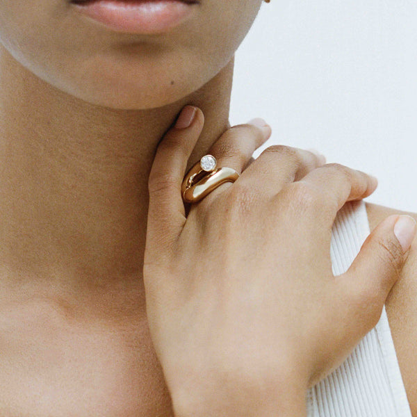 The Oera Loop Ring by Tabayer captures quiet sophistication in motion. Crafted in Fairmined 18K yellow gold, its sculptural loop design is accented by a single diamond—subtle yet powerful. A minimalist expression of strength, fluidity, and modern femininity.