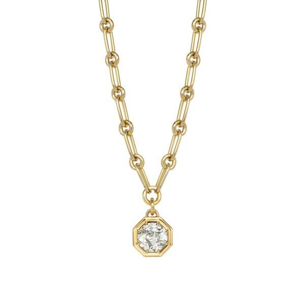 Single Stone's timeless Lola necklace features a 1.69 carat GIA certified old European cut diamond, graded O–P color / VVS2 clarity. Prong set in handcrafted 18K yellow gold, the diamond sits gracefully on our signature Lo chain — offering clean lines, soft warmth, and understated brilliance.