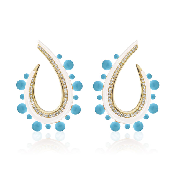SorellinaCrescent Ball Earring - White Onyx and Turquoise $7,000.00 Default Title Add to Cart This item is a recurring or deferred purchase. By continuing, I agree to the cancellation policy and authorize you to charge my payment method at the prices, frequency and dates listed on this page until my order is fulfilled or I cancel, if permitted. 18K Yellow Gold, White Onyx, Turquoise, White Diamond
