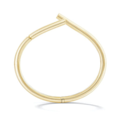 Experience the bold elegance of TABAYER's Oera hinged bangle, crafted with Fairmined 18k yellow gold and adorned with pavé diamonds. The bracelet features a sleek push clasp for easy wear. A voluminous bangle as emboldened form, lit by a smattering of diamonds.