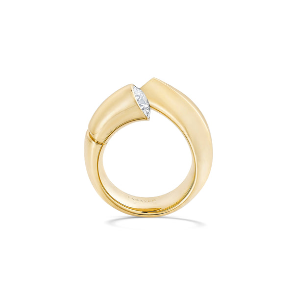 Sculptural and symbolic, the Oera Large Ring by Tabayer embodies purity and protection through its bold, circular form. Handcrafted in Fairmined 18K yellow gold and illuminated by a brilliant diamond, this ring redefines modern luxury—powerful, refined, and grounded in intention.