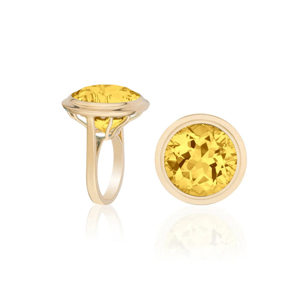 From Goshwara’s Manhattan Collection, the Round Cocktail Ring is a bold yet graceful statement of sculptural elegance. Featuring a richly faceted 20–25 carat citrine, bezel-set in luminous 18K yellow gold, the seamless design balances striking volume with refined craftsmanship. The clean lines and golden glow make this piece equally stunning as a cocktail centerpiece or a treasured addition to your fine jewelry collection.