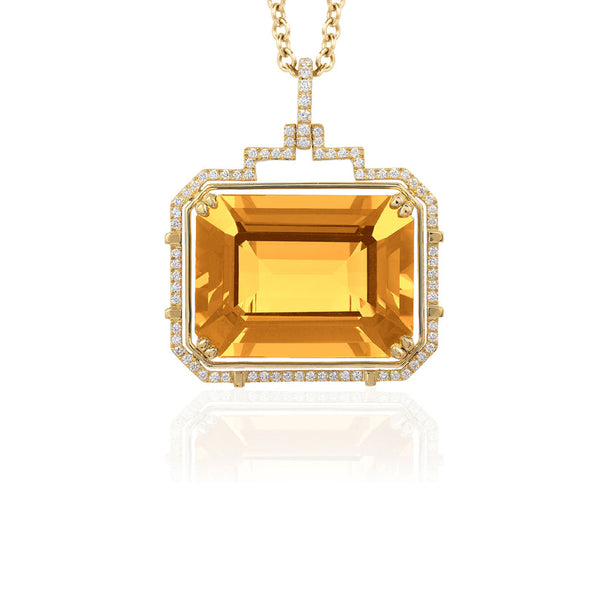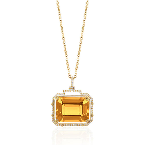 Gossip Statement Emerald Cut Pendant - Citrine