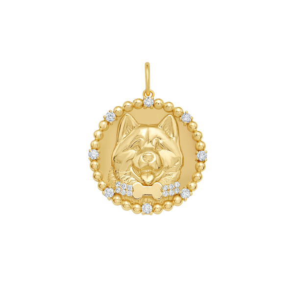 Strength, loyalty, and quiet nobility define Lionheart’s Akita Diamond Bead Medallion. Expertly handcrafted in 14K yellow gold, this radiant pendant captures the Akita’s courageous spirit and steadfast heart. A sculptural portrait of devotion, its expressive face is framed by a bead-set halo accented with brilliant-cut diamonds that shimmer like moments of pure love.