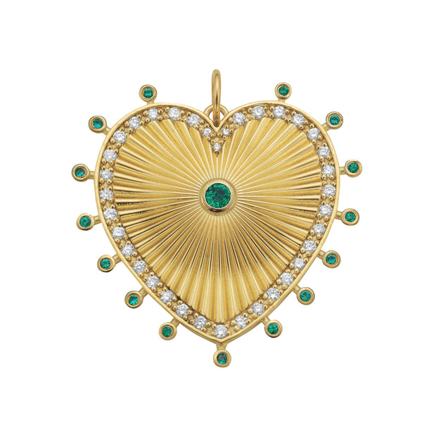 Inspired by Lionheart’s iconic Cassandane Collection, the Cassandane Mega Emerald Clover Medallion is a symbol of devotion, luck, and lasting beauty. Handcrafted in 14K yellow gold, this radiant medallion features a fluted clover design encircled by luminous emeralds—each one representing harmony and renewal. A striking heirloom piece that captures the essence of love and fortune, designed to be worn close and passed on with meaning.