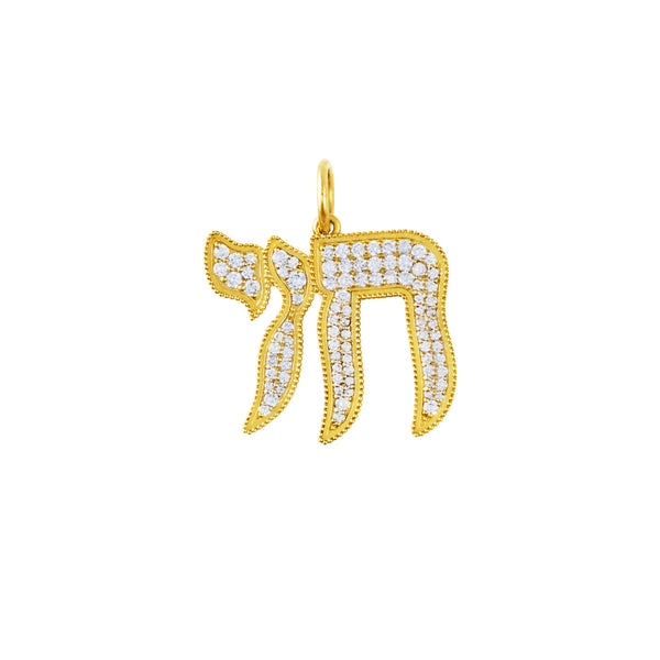A meaningful symbol of life and good fortune, the Diamond Beaded Chai Charm by Lionheart brings heritage and brilliance into perfect harmony. Handcrafted in 14K yellow gold, this iconic Hebrew symbol is outlined in beaded gold detailing and illuminated with 0.85 carats of pavé-set round brilliant diamonds. A powerful reminder of vitality and tradition, designed to be passed down through generations.