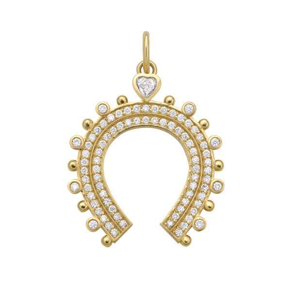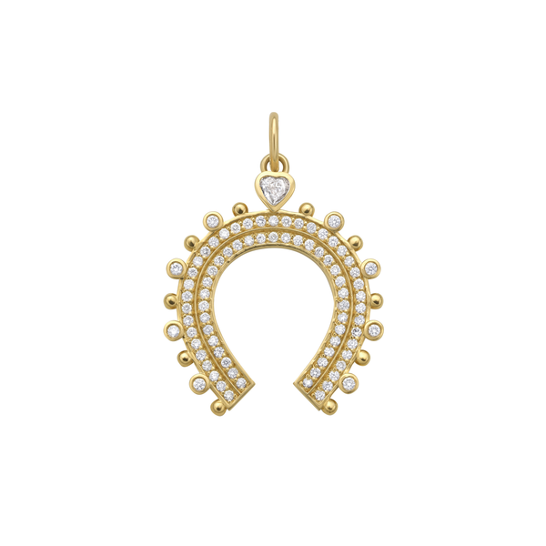 A modern talisman for love and luck, the Lucky Diamond Heart Horseshoe Charm by Lionheart merges symbolism and sparkle with effortless elegance. Handcrafted in 14K yellow gold, this charm features a radiant horseshoe motif embracing a diamond heart — a timeless gesture of hope, joy, and devotion.