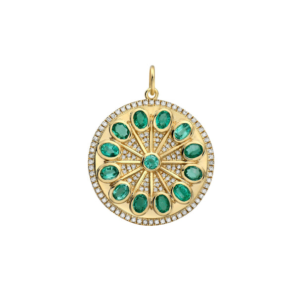 A talisman of calm, clarity, and timeless beauty. The “Serenity” Amulet by Lionheart is an homage to inner peace and the radiant energy of the heart. This handcrafted medallion glows with 1.91 carats of vibrant oval-cut emeralds and 1.15 carats of pavé-set diamonds, all meticulously set in 14K yellow gold. A modern-day relic that feels both regal and grounding, this charm was designed to be your personal source of luminous strength—worn close, cherished always.