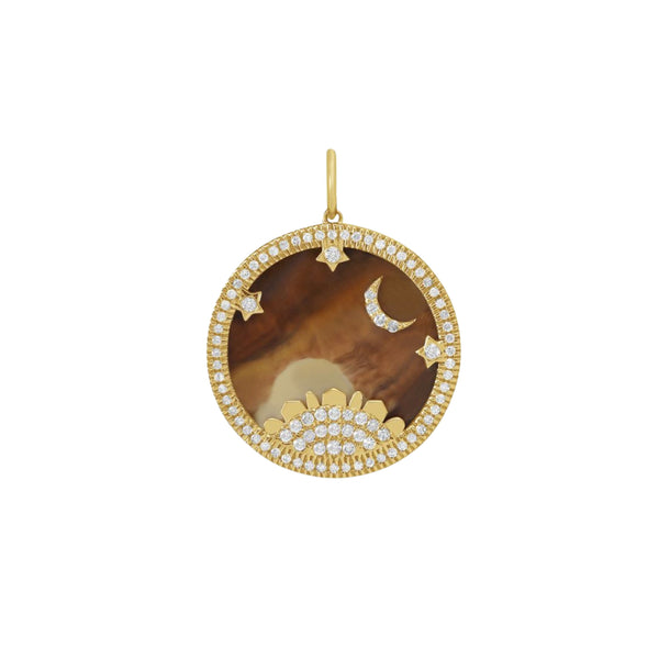For those who find magic in twilight skies and desert landscapes, the Starry Night Mountain Charm captures it all. Designed by Lionheart, this richly toned pendant features dreamy brown mother of pearl and a scattering of pavé diamond stars over golden peaks. A grounding yet ethereal talisman for the wanderer at heart.