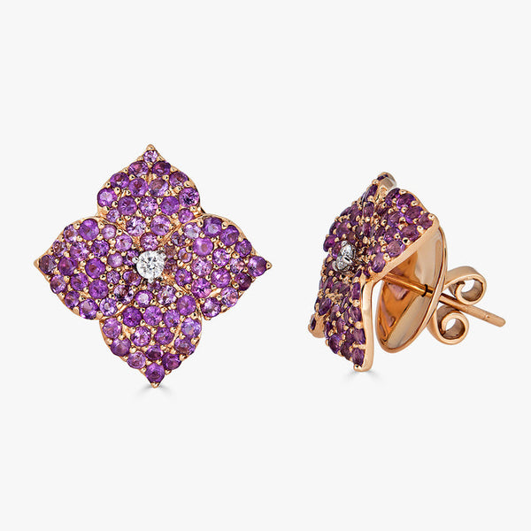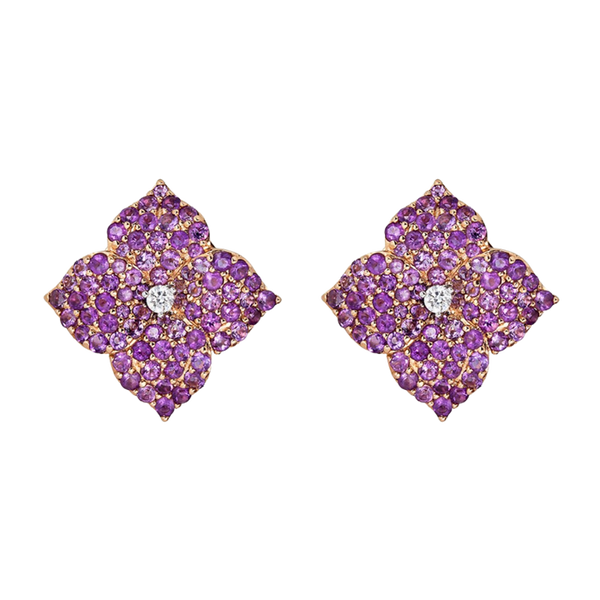 Dramatic yet refined, these Piranesi amethyst and diamond earrings bloom with radiant style. Crafted to mimic nature’s quiet power, each flower earring is a statement of romantic opulence.