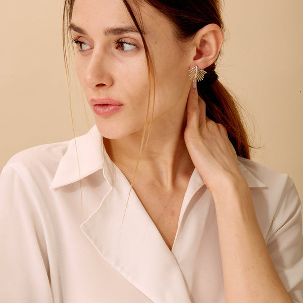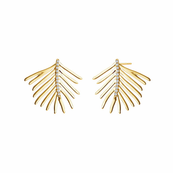 Inspired by nature’s elegance, the Palm Leaf Earrings are a luminous expression of Syna’s Jardin collection. Handcrafted in 18K yellow gold, brilliant round diamonds set along the stem, adding a refined sparkle to the flowing silhouette of the leaves. Lightweight and versatile, this design embodies botanical detail and everyday sophistication.