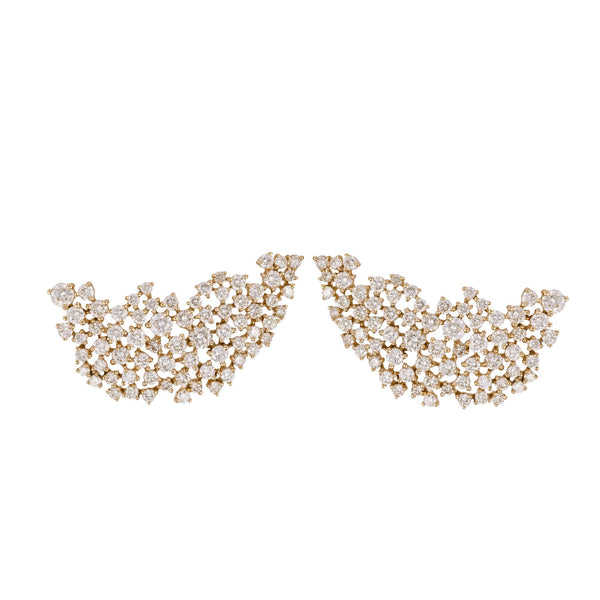 Ananya’s Scatter Ear Jackets are where drama meets precision. Handcrafted in 18k yellow gold and set with 2.62ct of white diamonds, these luminous jackets frame the ear in a cascading constellation of light. Designed to turn heads from every angle, they’re the ultimate statement in modern elegance.