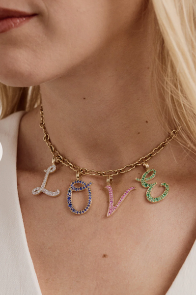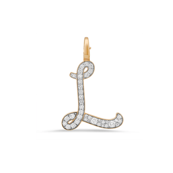 The Eriness Diamond Letter L Pendant turns personalization into a luxury statement—crafted in 14K gold and covered in pavé diamonds that sparkle from every curve. Designed with a fixed charm bail, it slides seamlessly onto any chain for a look that feels as personal as it is polished.