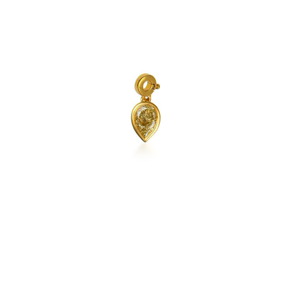 Khepri Jewels’ Fancy Color Yellowish Pear Diamond in Bezel Charm radiates understated brilliance. This charm features a pear-shaped fancy color diamond securely set in a bezel of 18K & 22K yellow gold. With its soft silhouette and golden warmth, it makes a versatile addition to your collection—stack it with other charms on the Cartouche Ball Chain to create a chic, staggered look.
