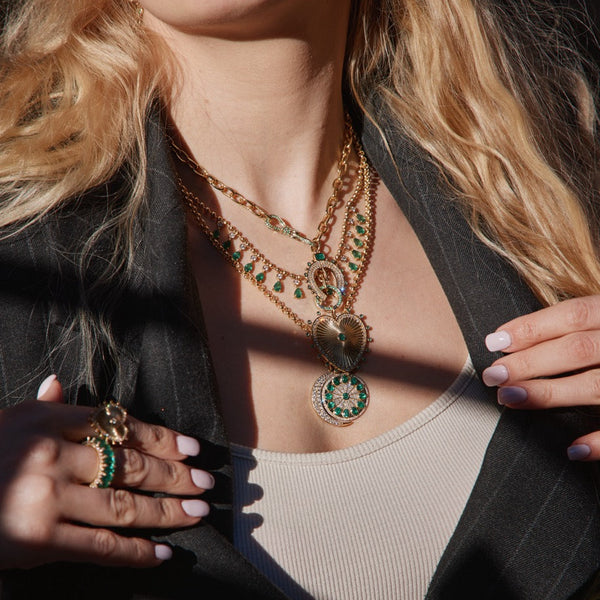 Inspired by Lionheart’s iconic Cassandane Collection, the Cassandane Mega Emerald Clover Medallion is a symbol of devotion, luck, and lasting beauty. Handcrafted in 14K yellow gold, this radiant medallion features a fluted clover design encircled by luminous emeralds—each one representing harmony and renewal. A striking heirloom piece that captures the essence of love and fortune, designed to be worn close and passed on with meaning.