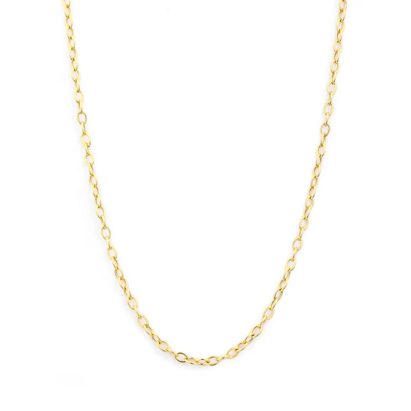 An everyday essential designed with Syna’s timeless craftsmanship. This 18-inch small link chain is handcrafted in 18K yellow gold and finished with a secure lobster clasp. Lightweight yet durable, the refined design is perfect for layering or for showcasing Syna’s gemstone pendants. With versatile adjustability, this chain embodies understated elegance and effortless wear.